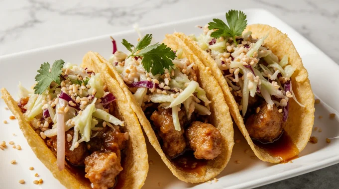 These tacos are ridiculously crave-worthy: crunchy wonton shells, sticky sesame-ginger chicken, fresh slaw, and a drizzle of sweet chili sauce. It’s the perfect combo of flavor and texture, and the best part? You can whip them up in under 30 minutes.