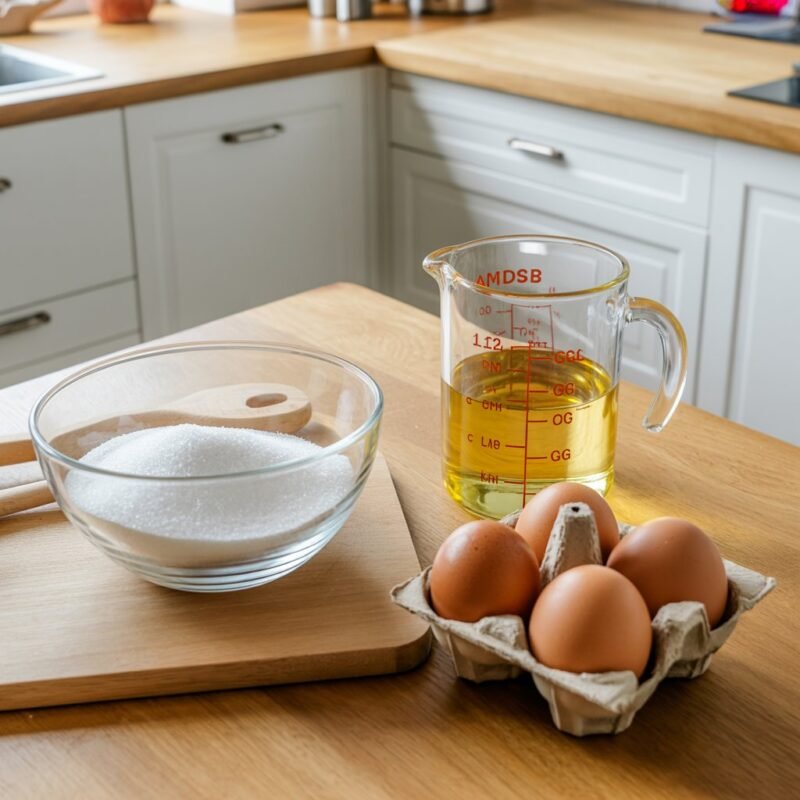 - Mix Wet Ingredients: In a large bowl, beat eggs, oil, and sugar until smooth.