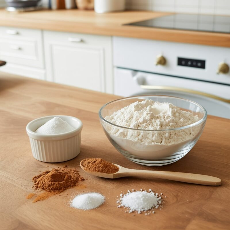 - Whisk Dry Ingredients: In a bowl, mix flour, baking powder, baking soda, salt, and cinnamon.