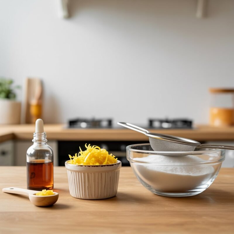 - Mix Wet Ingredients: In a separate bowl, whisk the room-temperature eggs, granulated sugar, lemon zest, and extract until pale and slightly frothy.