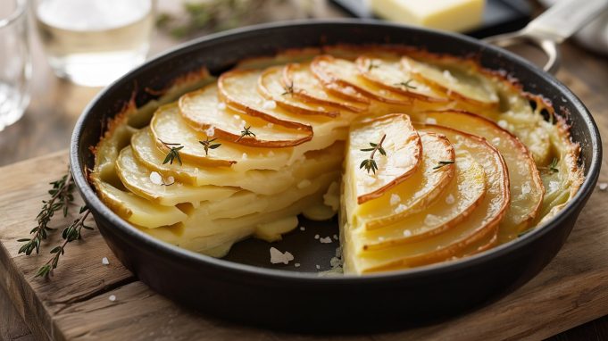 This recipe is a dream for home cooks looking to impress without overcomplicating things. It’s naturally gluten-free, vegetarian, and made from pantry staples. While it looks and tastes gourmet, it’s incredibly easy to assemble thanks to a few key techniques—namely, slicing the potatoes thin with a mandoline and baking them in a trusty cast iron skillet.