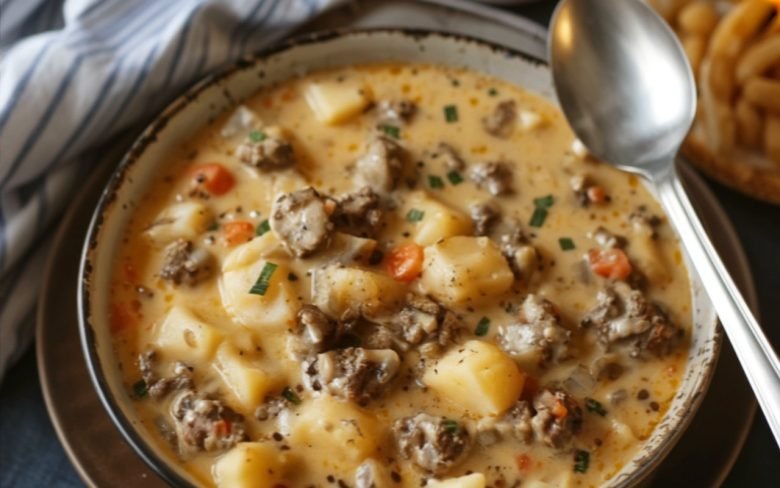 Because this soup combines meat, potatoes, and dairy, it offers a satisfying balance of protein, fats, and carbs. You can lighten it by reducing cream or using lower-fat milk.
