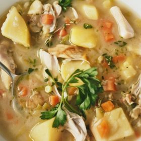 - Notable nutrients: potassium from potatoes; vitamin A from carrots; iron & B vitamins from chicken thighs