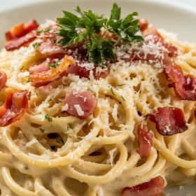 - Cook the Bacon: While the pasta is cooking, fry the bacon in a separate skillet until crispy. Drain on a paper towel, then crumble into pieces.