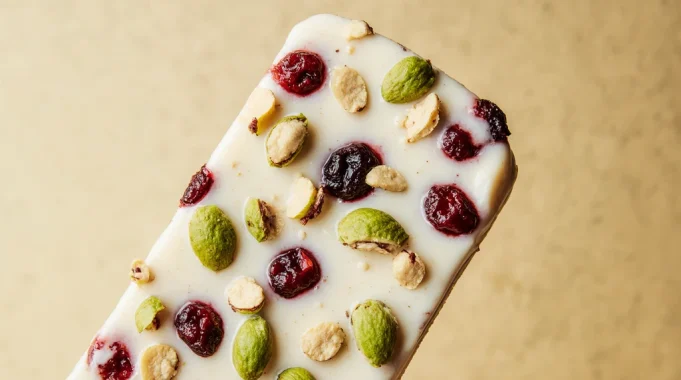 Creamy, sweet white chocolate provides the perfect canvas for the vibrant green of the pistachios and the jewel-like red of the cranberries. With a satisfying snap and a perfect balance of sweet, tart, and salty notes, this bark is an ideal treat for holiday gifting, a beautiful addition to a dessert board, or a simple indulgence to accompany an afternoon coffee.