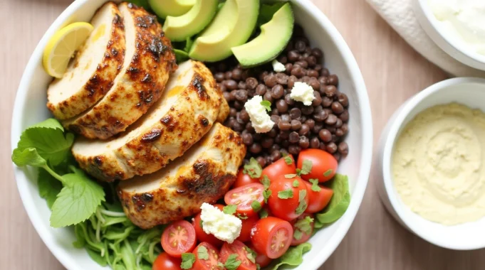 Protein + Fiber Rich: Black lentils, chicken, and hummus make these bowls filling and balanced.
