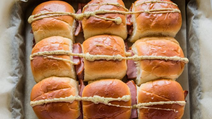 - Turkey & Swiss Sliders – Swap ham for turkey and use Swiss cheese.
