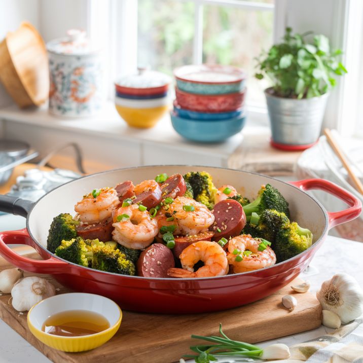 Picture this: It’s been a long day, and you’re craving a meal that’s both comforting and exciting. As you walk into your kitchen, the aroma of garlic and honey fills the air, and you’re instantly transported to a world of culinary delight. That’s the magic of our Honey Garlic Shrimp, Sausage, and Broccoli dish – a perfect blend of sweet, savory, and satisfying flavors that will make your taste buds dance with joy.