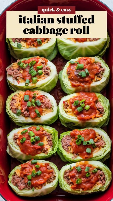 Italian stuffed cabbage rolls are more than just a meal—they’re a celebration of rustic, homemade cooking that combines wholesome ingredients with robust Italian flavors. Every bite offers a perfect balance of savory meat, tender rice, and flavorful herbs wrapped in delicate cabbage leaves, all smothered in a rich tomato sauce. This dish brings together the warmth of family dinners and the sophistication of Italian cuisine in one hearty, satisfying package.