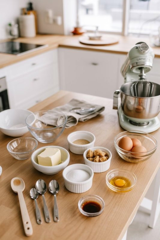 - Make Batter: Cream 1 cup softened butter with brown sugar and granulated sugar on medium-high for 3-4 minutes until light and fluffy. Beat in eggs one at a time, then vanilla, scraping bowl as needed.
