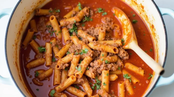 This easy, flavor-packed dish combines robust ground beef (or tender shredded roast), aromatic herbs, rich tomato sauce, and perfectly cooked pasta—all in a single pot. It’s the ideal recipe for busy weeknights, effortless entertaining, or meal prepping for the week ahead.