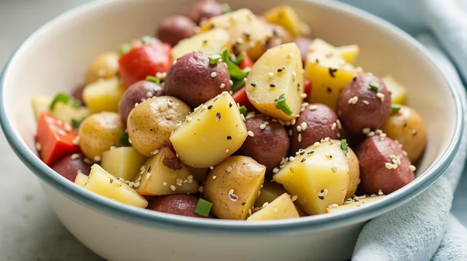 Whether you’re a seasoned home cook or just want to impress guests with minimal fuss, this dish is designed for ease, elegance, and taste. Best served warm, it’s a welcome departure from mayonnaise-based versions, with a vinaigrette dressing that keeps it light and flavorful.