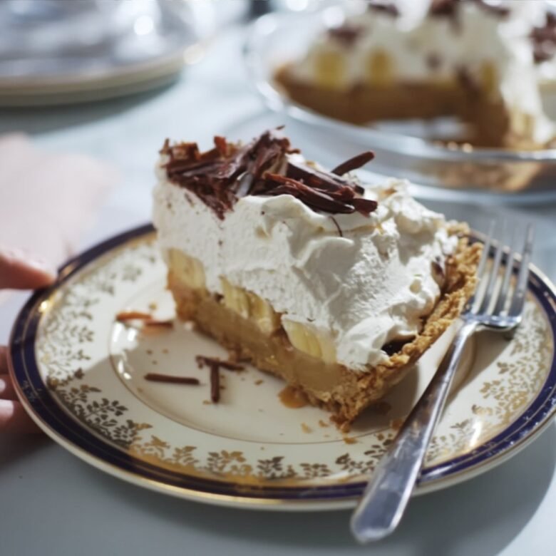 Spoon the freshly whipped cream over the banana layer, using a spatula to create appealing, rustic swoops and swirls. Generously dust the top with high-quality chocolate shavings. For the cleanest slices, let the finished pie chill for one more hour before serving.