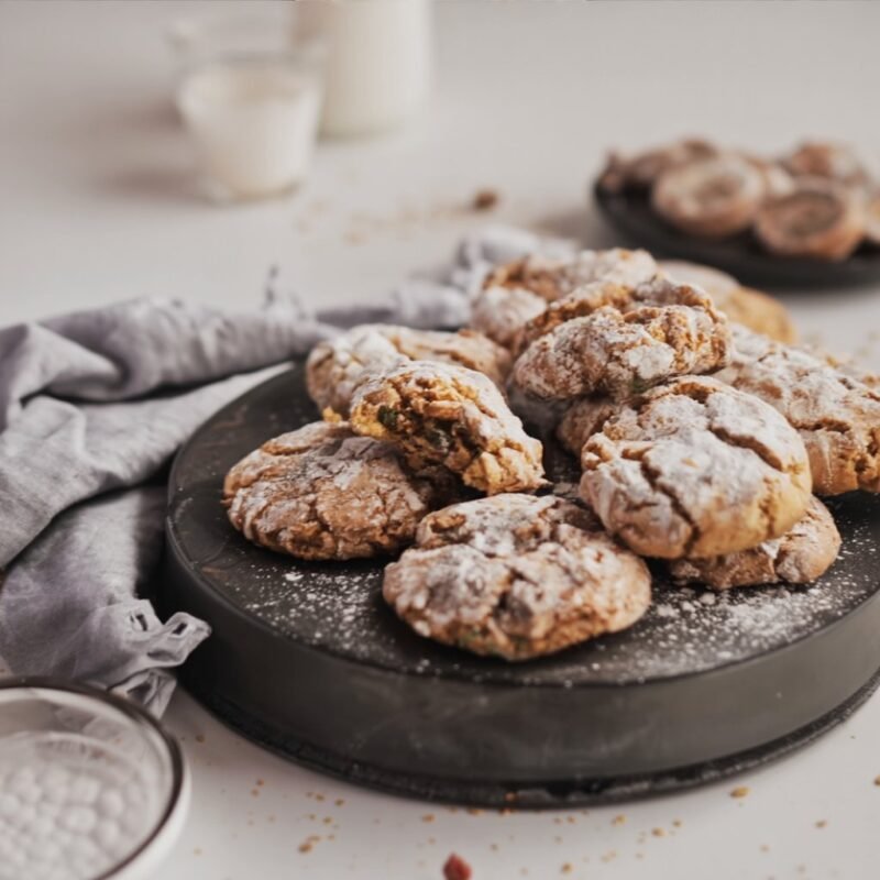 Mastering these chewy Pistachio Crinkle Cookies will permanently upgrade your dessert repertoire. By combining simple ingredients like pistachio meal, almond meal, and egg whites, you effortlessly create a naturally dairy-free and gluten-free treat. The contrast between the sweet, snowy icing sugar and the vibrant, earthy pistachio center makes for an unforgettable bite that looks incredibly professional with very little effort.