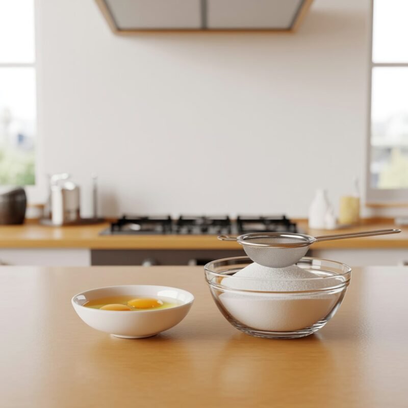 • 220 g Caster sugar: Its fine texture dissolves easily into the egg whites for a smooth dough.
