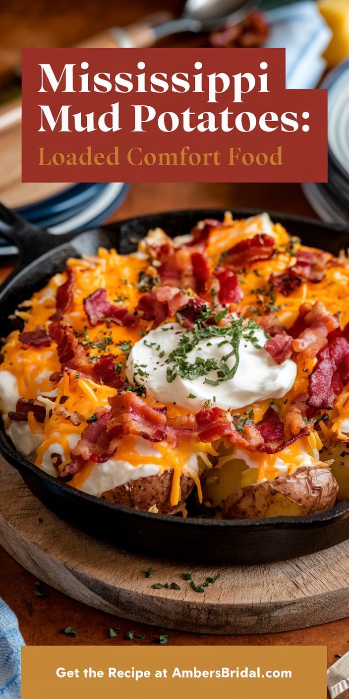 Mississippi Mud Potatoes are a decadent side dish or appetizer that combines crispy potatoes, gooey cheese, and savory bacon. They’re perfect for potlucks or family dinners.
