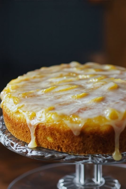 Drizzle the glaze all over the top of the cake, letting it run over the lemon slices and drip enticingly down the sides. Let the glaze set for about 15-20 minutes before slicing and serving.