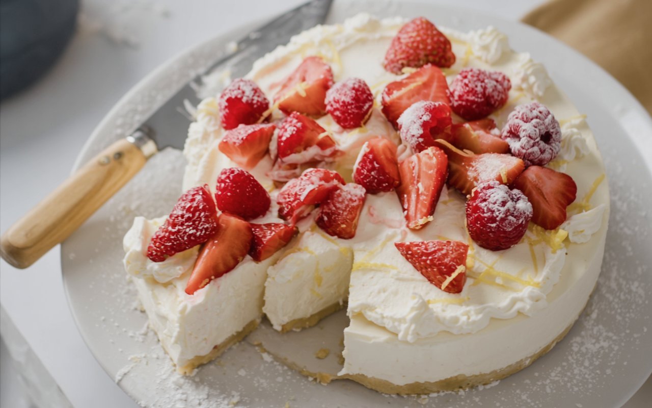 - Garnish and Serve: Release from pan. Whip the remaining cream for topping and decorate with fresh berries before serving.