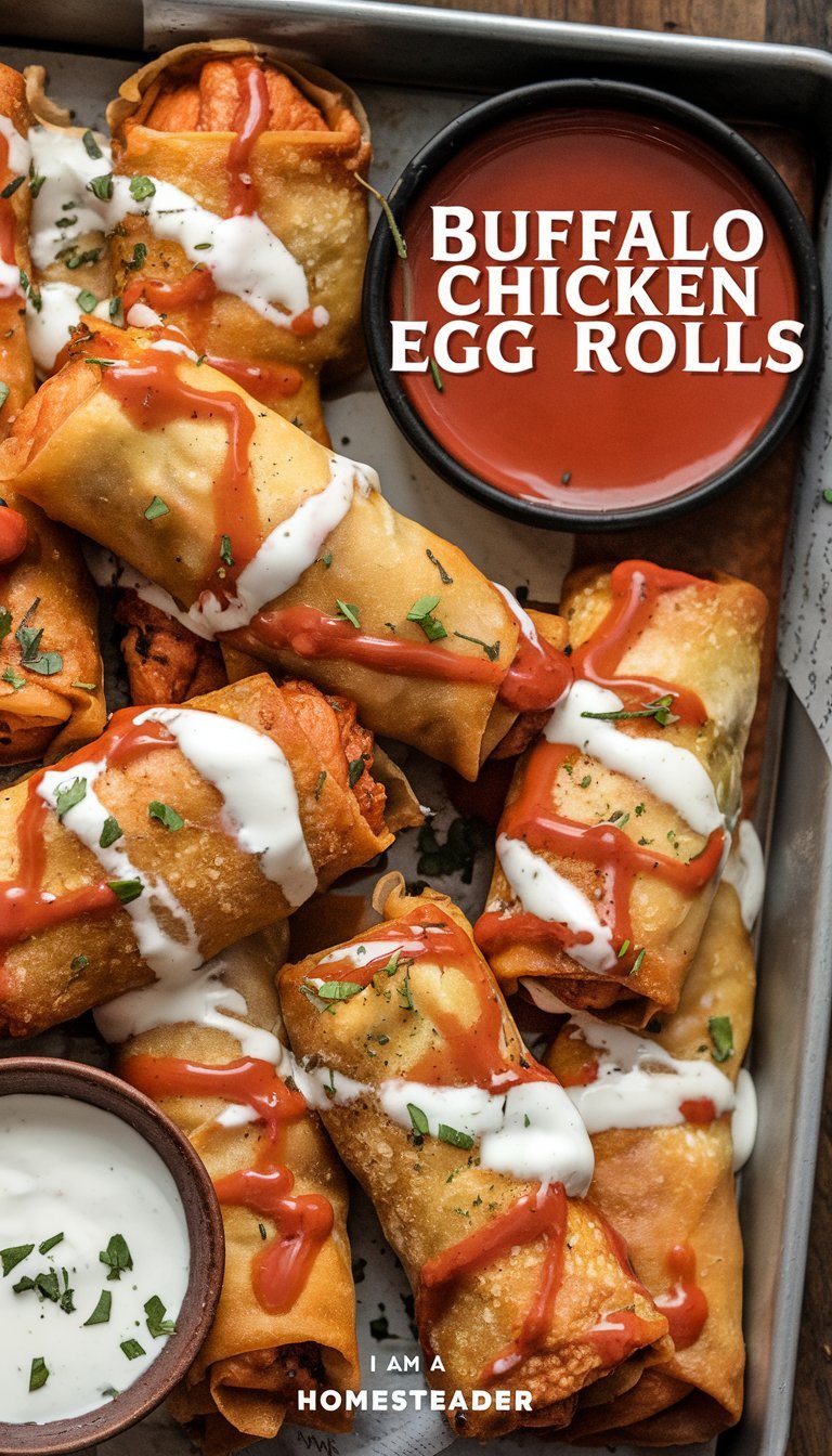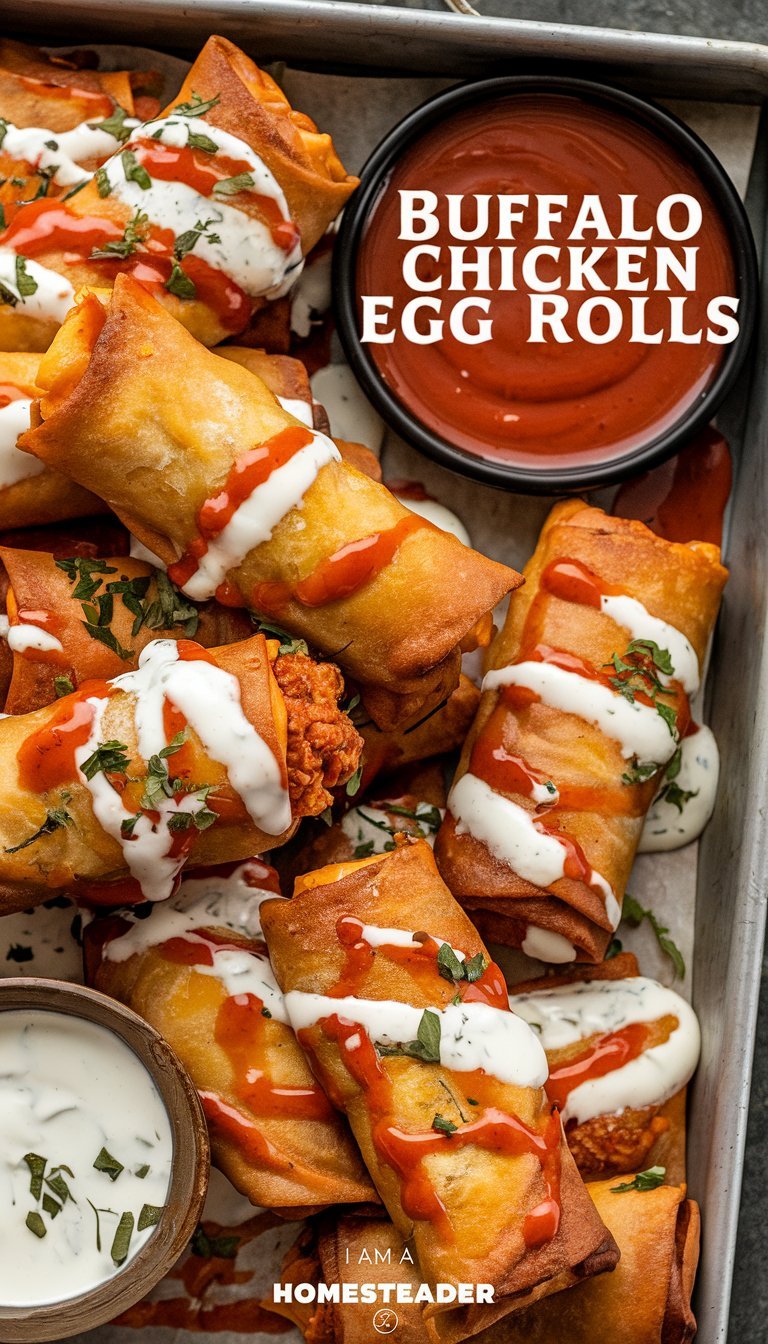 - Crispy egg rolls packed with bold buffalo chicken flavor