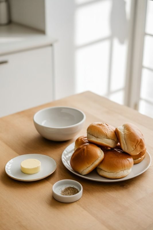 Butter the cut sides of brioche buns. Toast in a hot pan or under the broiler 1–2 minutes until golden.