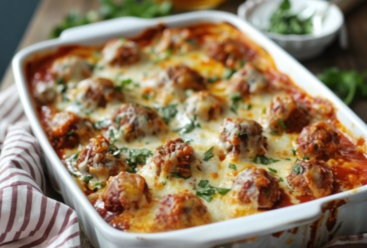 Dump-and-Bake Meatball Casserole (No-Boil Pasta)