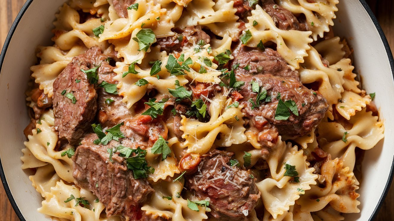 Creamy Parmesan Garlic Beef Bowtie Pasta