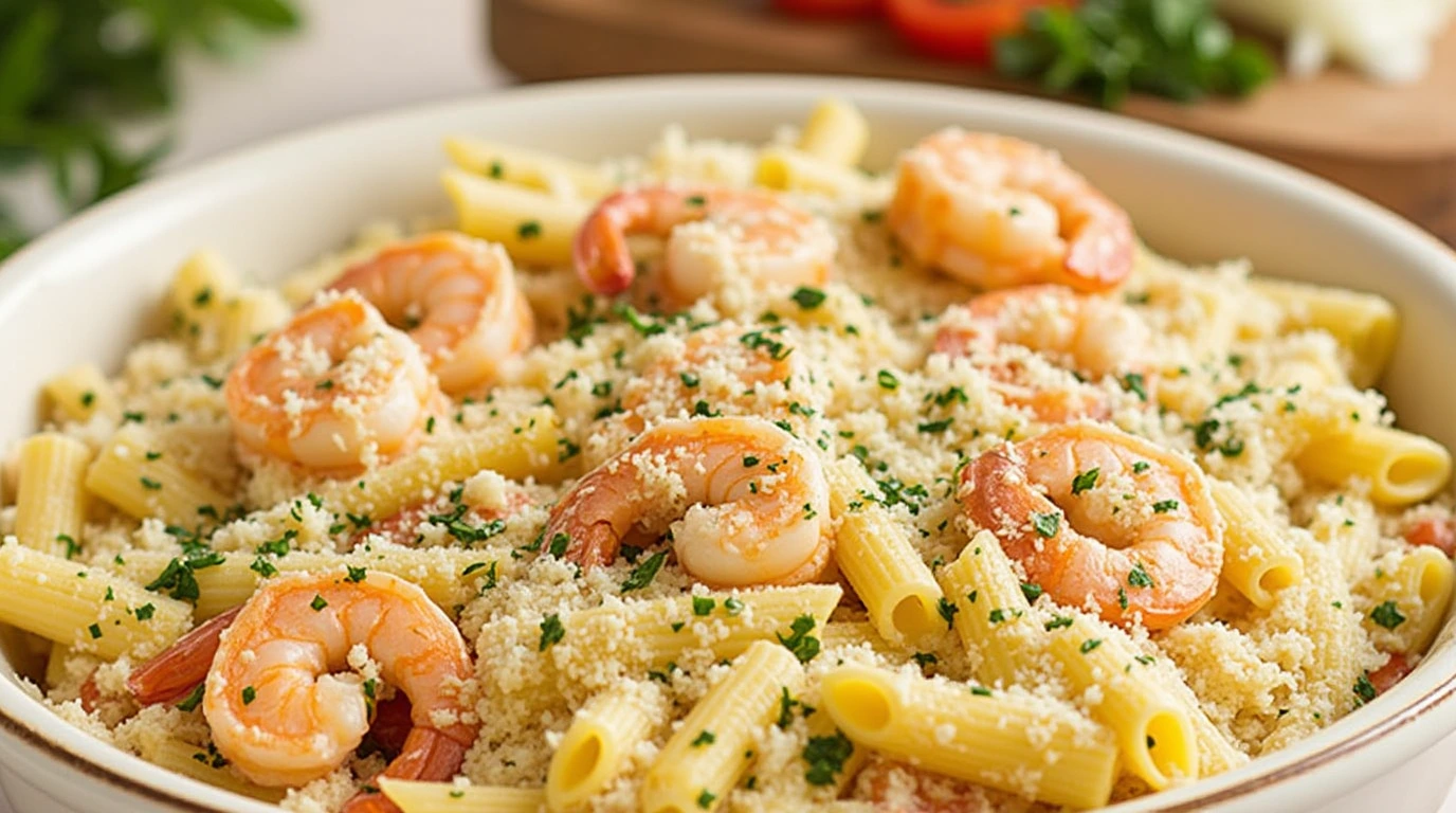Garlicky Shrimp Alfredo Bake