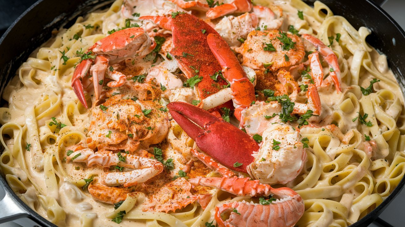Cajun Lobster, Crab, and Salmon Alfredo