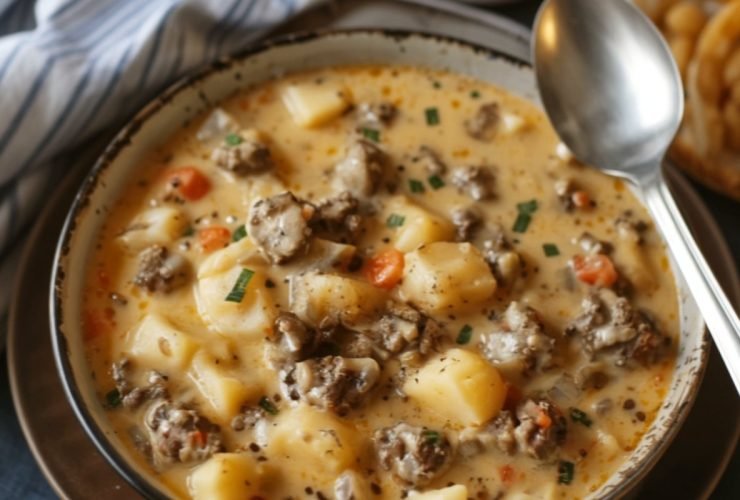 Crockpot Creamy Potato & Hamburger Soup | Easy Recipe