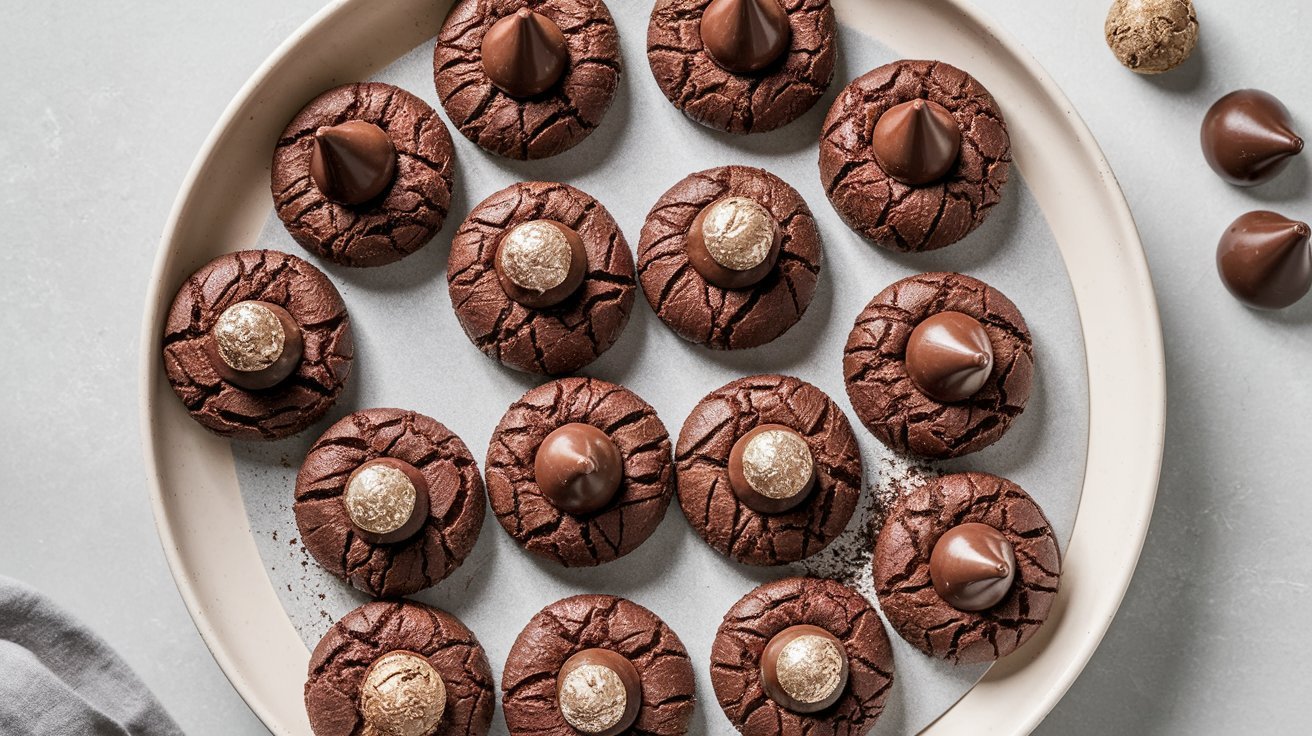 These cookies are a dream come true for chocolate lovers. They have a deep cocoa flavor, a slightly chewy texture, and a sweet chocolate kiss right in the center. Plus, they’re easy to customize with different variations (which we’ll cover later in the post). Here’s why you should give them a try: