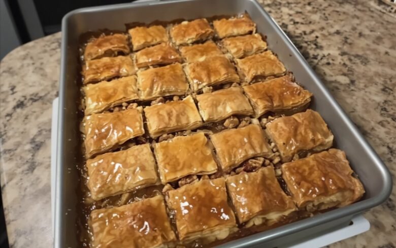 Mistake: Cutting baklava before it cools and absorbs syrup.