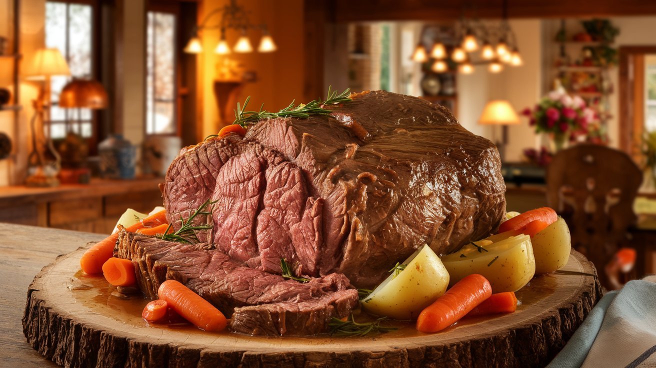 The process is simple, yet it demands patience. Once everything is assembled, the pot is covered and placed in the oven or slow cooker, where the low, steady heat does its magic over several hours. The beef becomes tender enough to fall apart at the slightest touch, and the vegetables turn soft, absorbing the flavors of the broth. Every bite of this roast is a harmony of textures and tastes—a succulent piece of beef, a burst of sweet, caramelized vegetables, and a rich sauce that ties it all together.