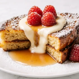This Creme Brulee French Toast combines the rich, custardy texture of French toast with the crispy, caramelized sugar top of a classic crème brûlée. Ideally soaked overnight and baked to golden perfection, it is the ultimate indulgent brunch dish.