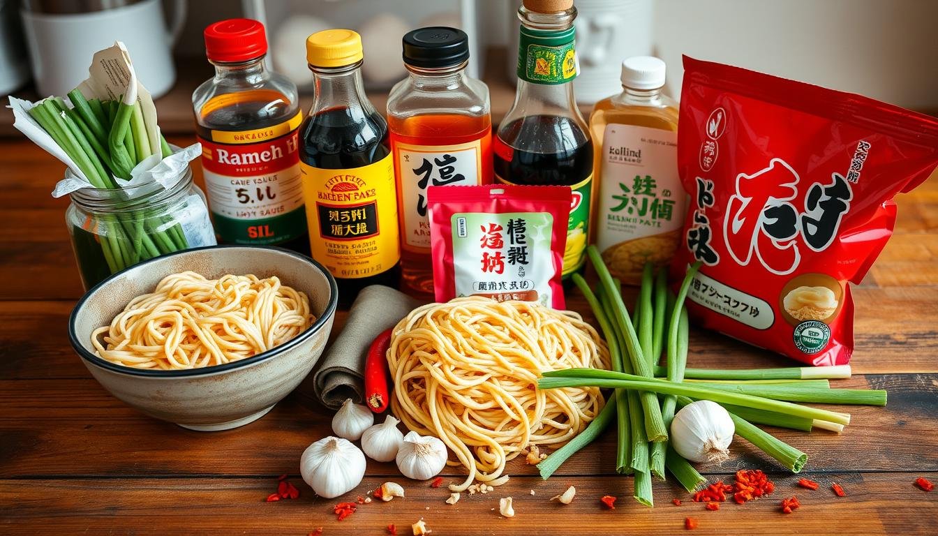 Making a tasty saucy ramen starts with the right ingredients. You need the base, aromatic additions, and toppings. Each part is key to a great meal. Let’s look at the must-haves for making delicious ramen.