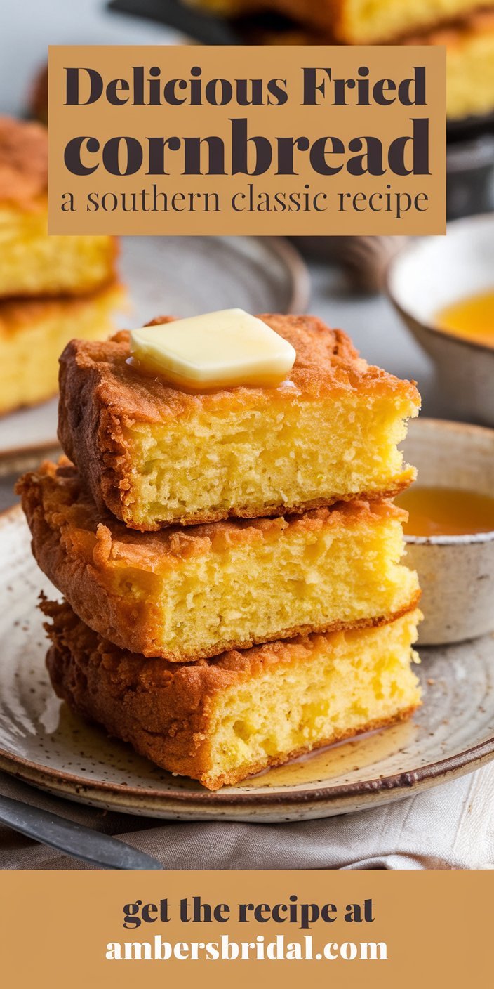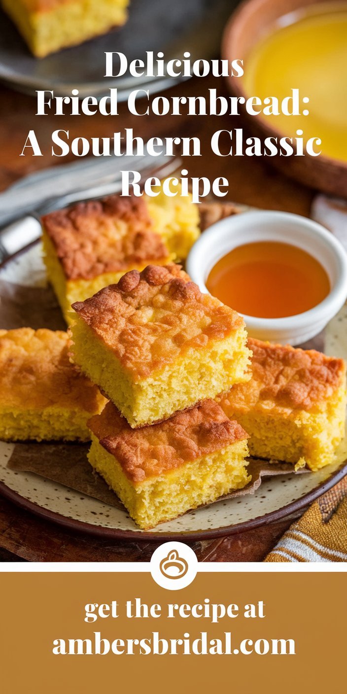 Fried cornbread goes well with Southern dishes like chili and greens. Serve it with eggs and bacon for breakfast. You can also drizzle it with honey or maple syrup for a sweet touch.