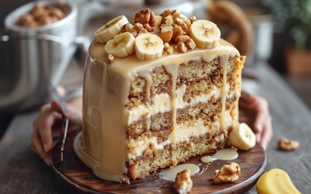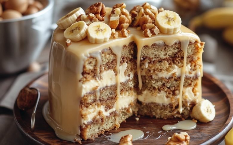 Heavenly Banana Walnut Cream Cake