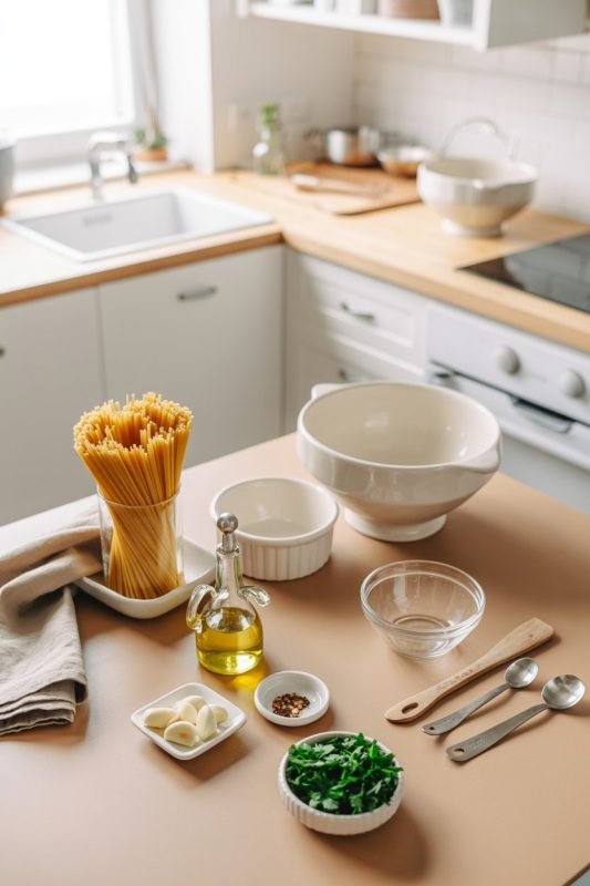 - Prep: ~10 minutes (slice garlic, chop parsley, measure)