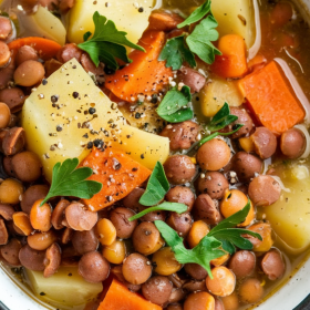 Lentil and Potato Soup is a perfect embodiment of comfort and nutrition—a satisfying, hearty dish that brings together the best of legumes and vegetables in a rich, flavorful broth. Its simple preparation, balanced flavors, and versatile nature make it a staple for any home cook looking for a meal that nourishes both the body and soul. Whether you’re making it for a cozy family dinner or as a nourishing meal prep option, this soup is sure to delight with every spoonful.