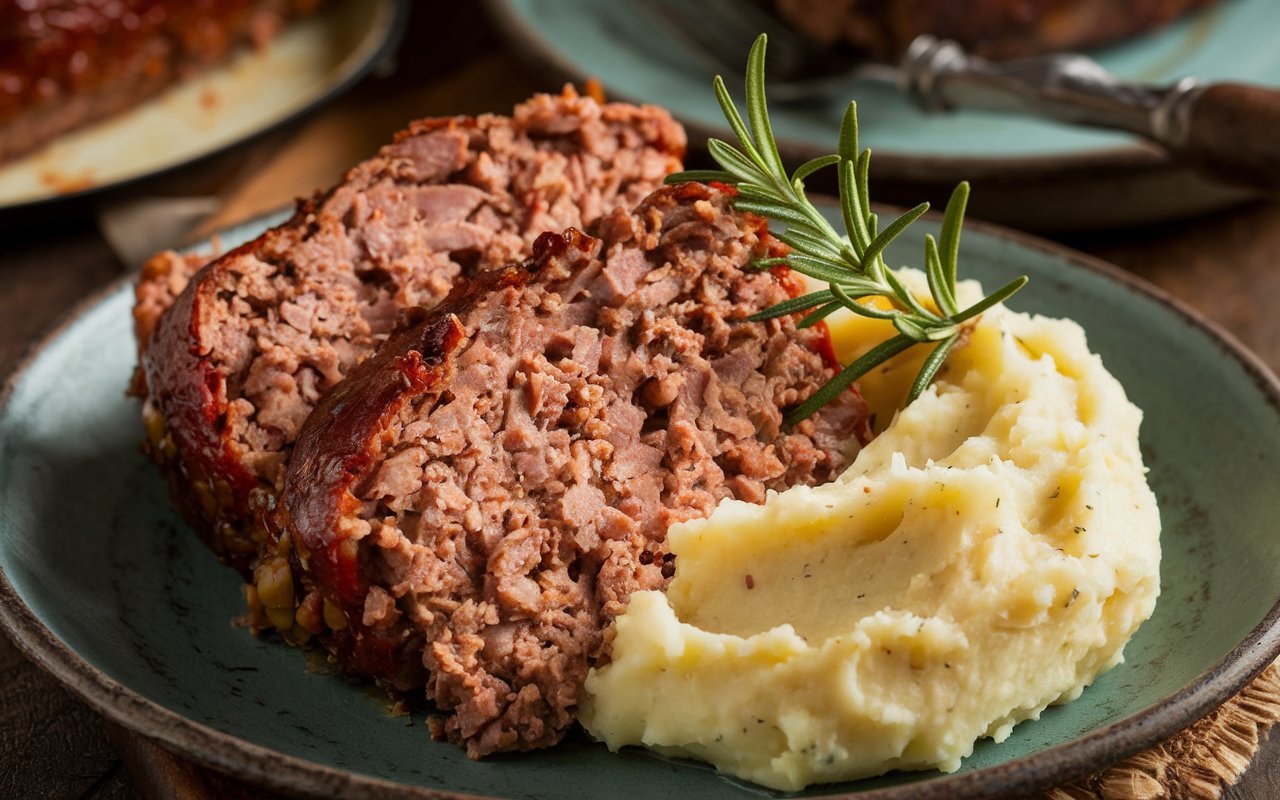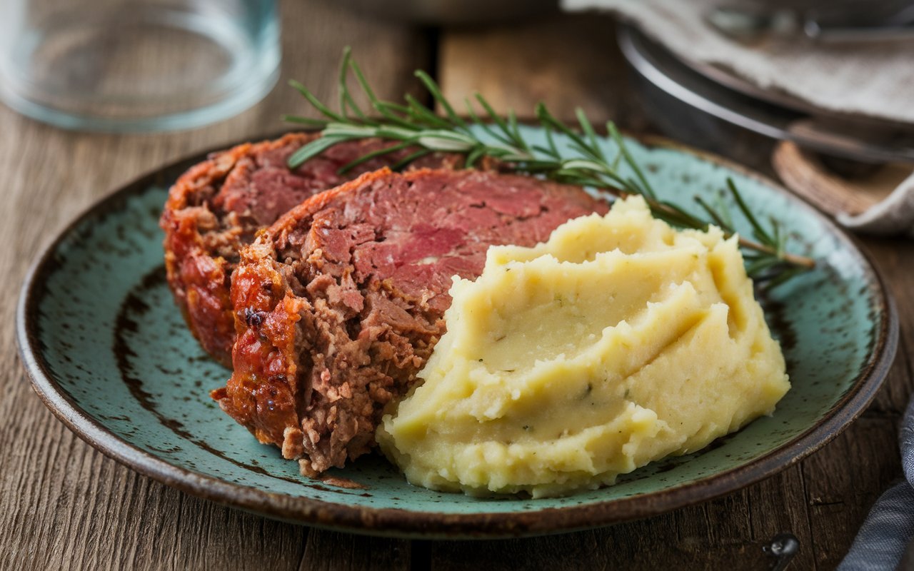 - Slice the meatloaf and serve alongside a generous dollop of mashed potatoes.
