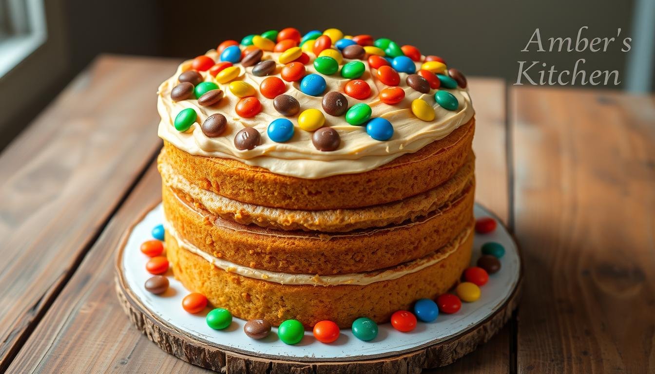 Our M&M’s Peanut Butter Cake needs careful baking. We’ll show you how to make a tasty dessert. It combines rich flavors with expert cake assembly.
