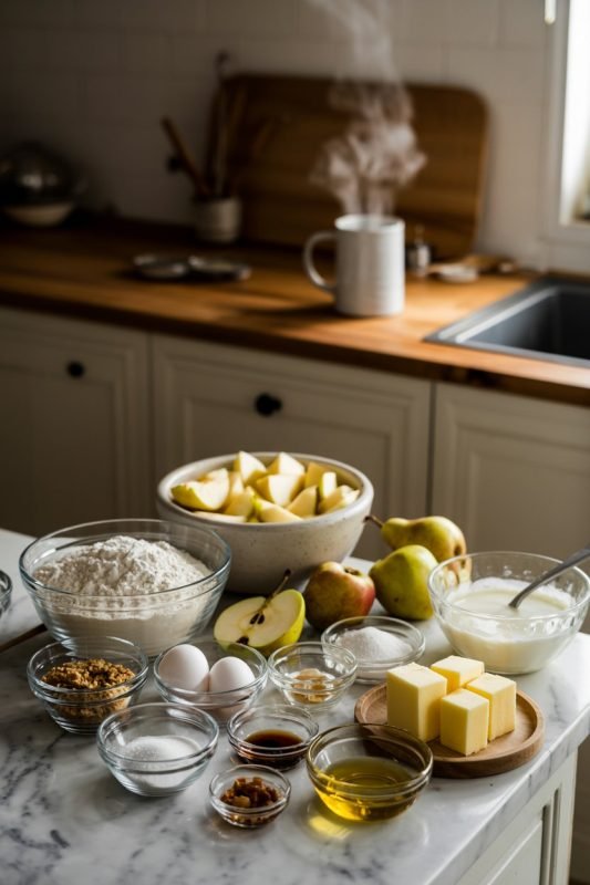 A moist, fruit-packed cake studded with juicy red apples and sweet pears, crowned with a buttery demerara sugar lid that bakes into an irresistible crackly crust. With simple pantry staples and no dairy in the batter, this crowd-pleaser stays tender for days and comes together in under an hour—perfect for cozy weekends or effortless entertaining.