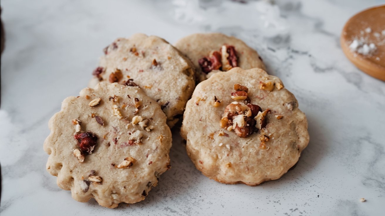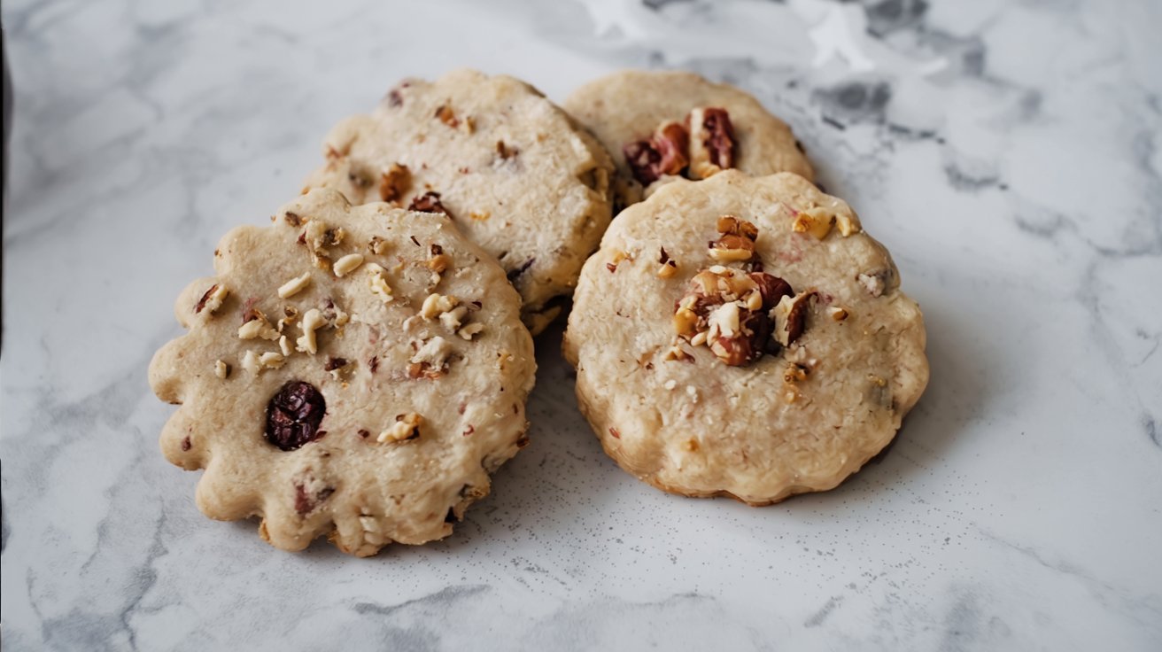 Tender, buttery shortbread studded with toasted pecans. These bakery-style cookies are lightly sweet, rich with vanilla and almond, and irresistibly crumbly—perfect with coffee or tea.