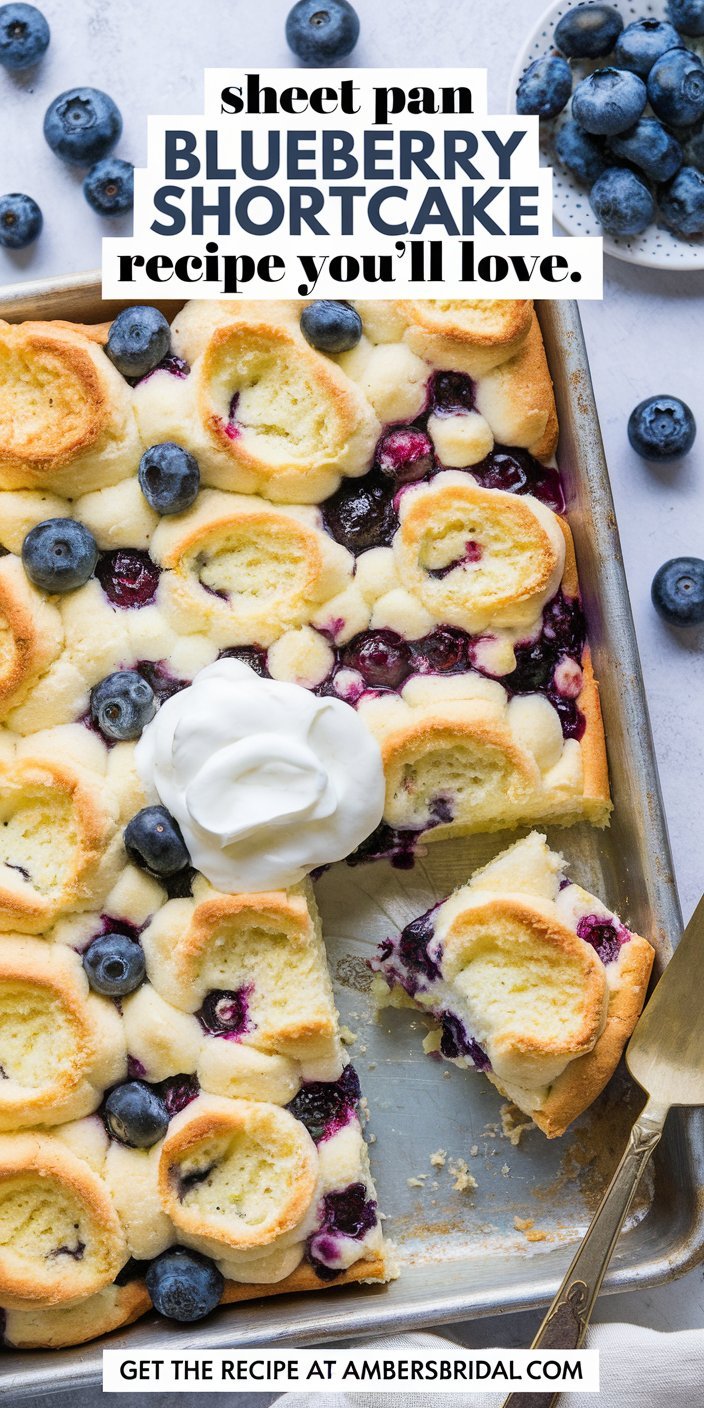 “Simplicity meets deliciousness in this sheet pan blueberry shortcake – your new summer party secret weapon!”