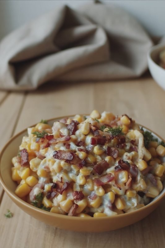 Sweet corn, sharp cheddar, and smoky bacon melt together in the slow cooker for a rich, crowd‑pleasing Southern‑style side dish. Perfect for holidays, potlucks, or effortless weeknights.