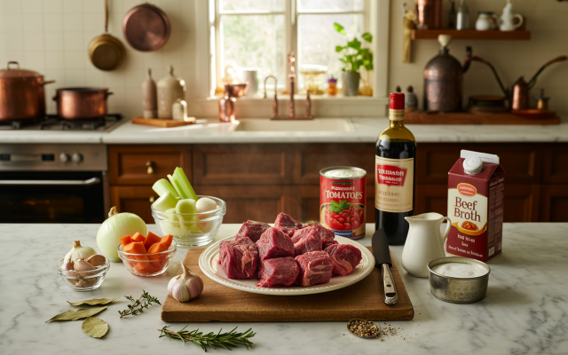 Heat olive oil in a Dutch oven over medium-high heat. Pat beef dry and brown in batches (3–4 minutes per side). Remove and set aside. - Step 2: Sauté the Vegetables (Soffritto)