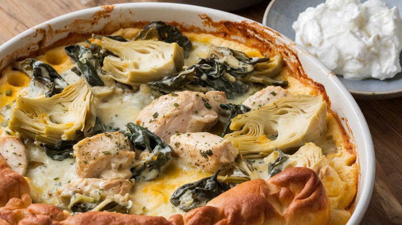 If you’re looking for a wholesome, easy-to-make dinner that feels gourmet but comes together quickly, look no further than Spinach Artichoke Chicken with Cottage Cheese. This dish is perfect for busy weeknights, meal prepping, or even serving guests when you want to impress without spending hours in the kitchen. The combination of tender chicken, creamy cottage cheese, earthy spinach, and tangy artichoke hearts makes every bite packed with flavor.
