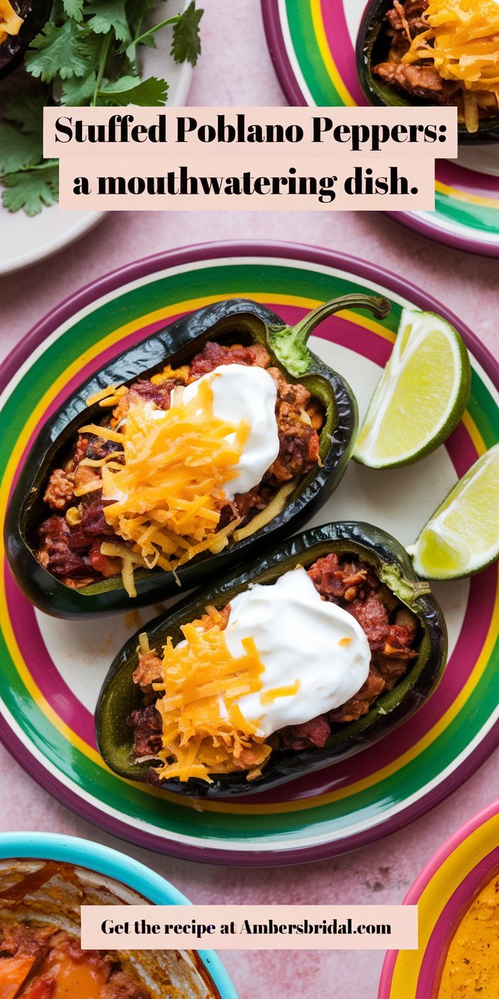 Our Stuffed Poblano Peppers recipe is full of flavor. Bake at 375°F for 20-25 minutes until the cheese is melted. Add fresh cilantro and a squeeze of lime for extra flavor.
