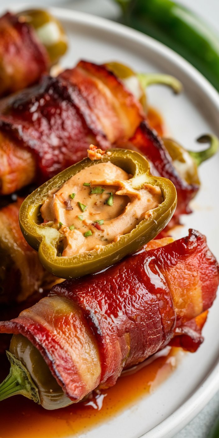 - Thick-cut bacon wrapped around each pepper