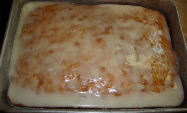 While the cake is baking, make the soaking syrup by mixing together the powdered sugar, lemon juice and melted butter.