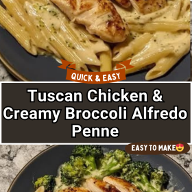 Tuscan Chicken with Creamy Broccoli Alfredo Penne offers a perfect balance of hearty flavors and comforting creaminess. Every spoonful is a reminder of the rustic charm of Tuscany, where simple ingredients transform into a meal that nourishes both body and soul. From the tender chicken and crisp broccoli to the indulgent, Parmesan-infused sauce, this dish is sure to become a favorite in your recipe collection.